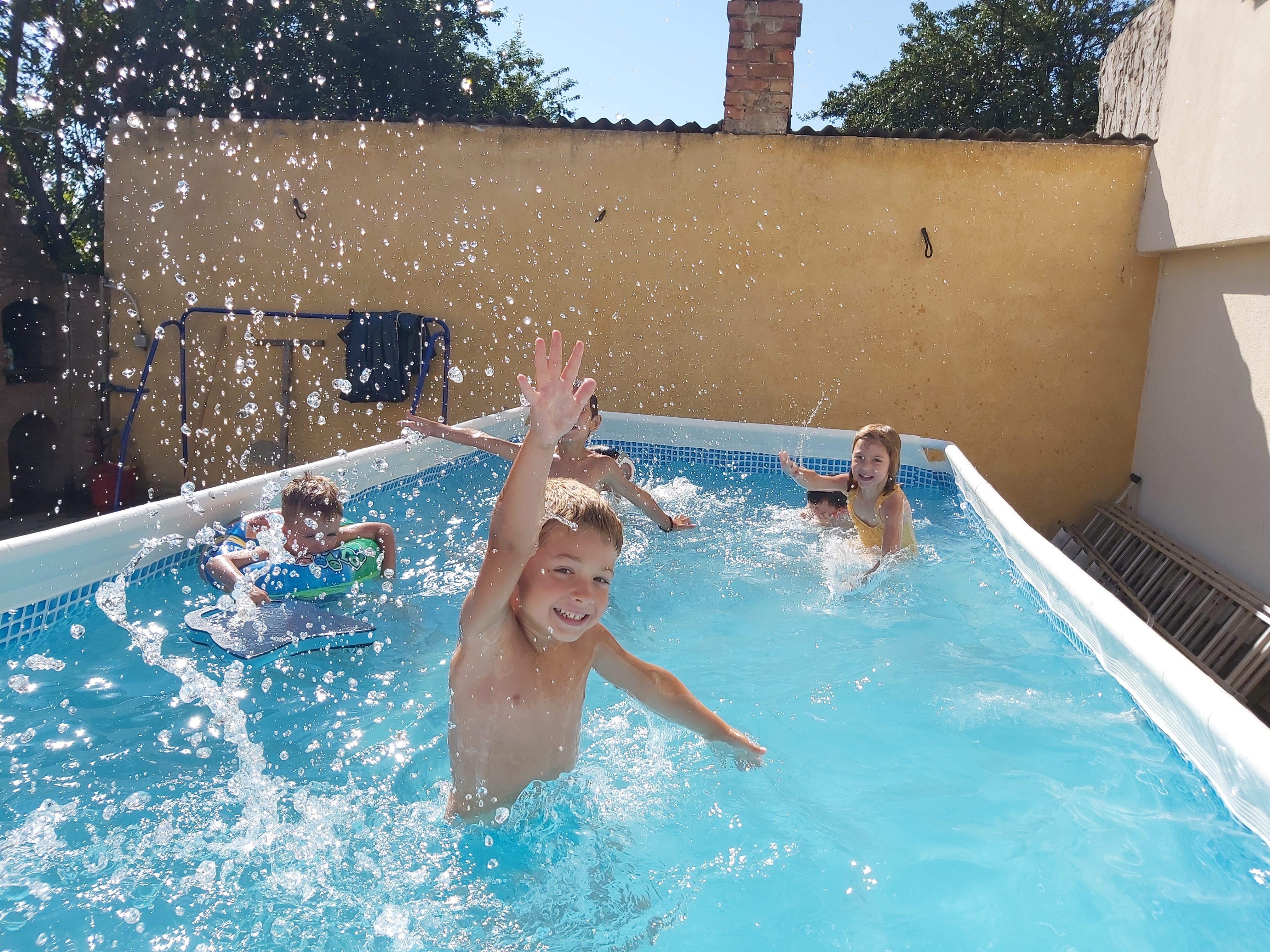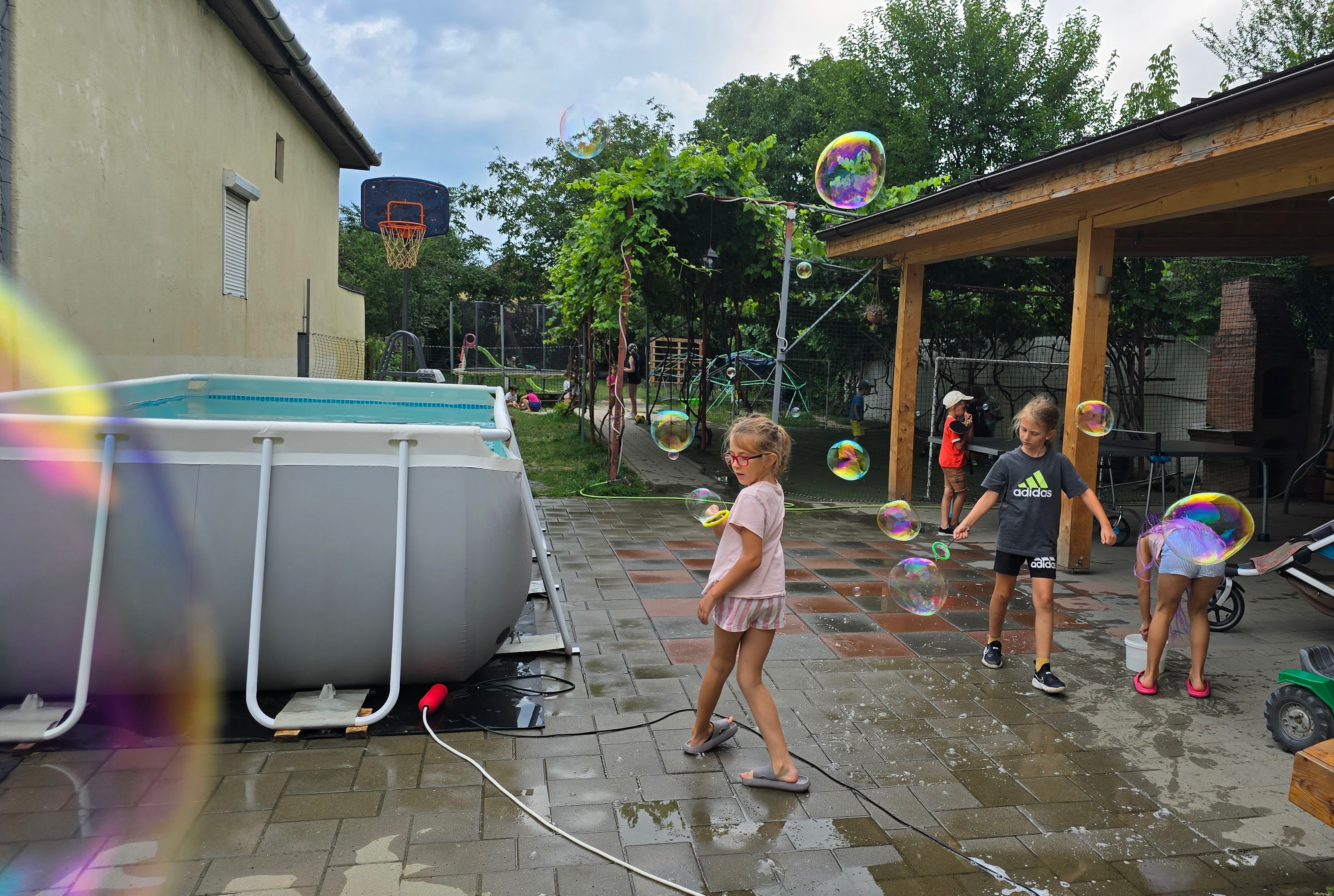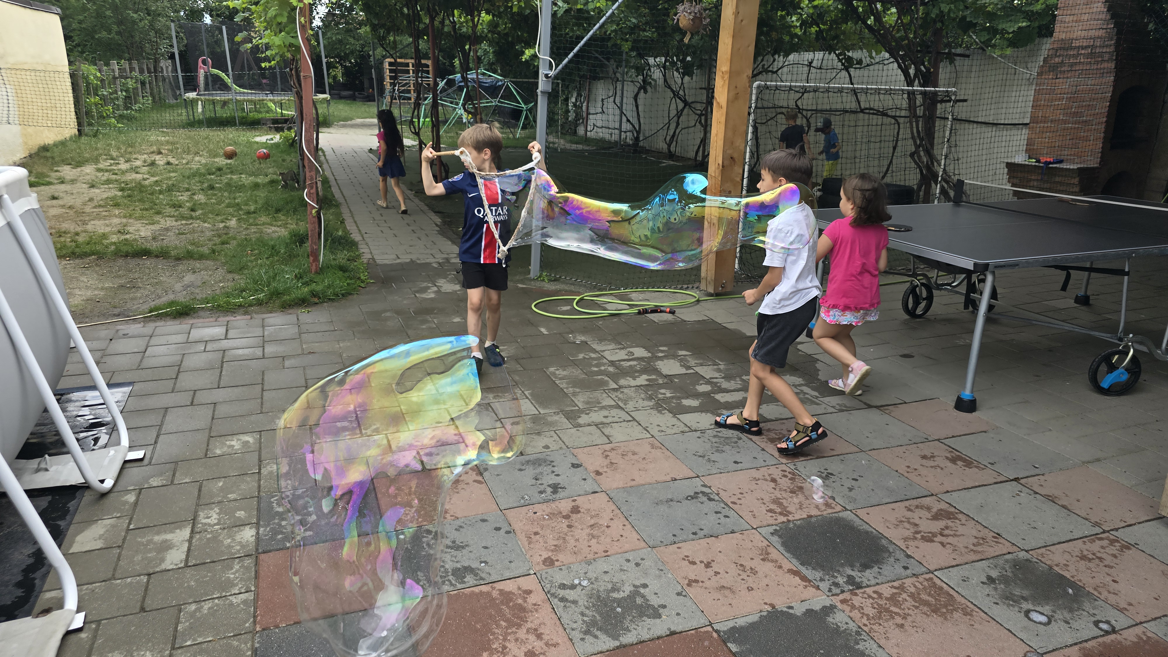 • Loc de joacă exterior cu tobogan și leagăne.